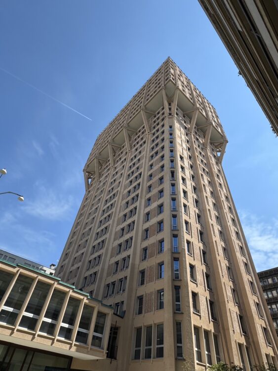 After Dimore Studio, it’s time to take a breather. We once again head across Milan and stop in front of Torre Velasca, a tower that seems straight out of another era, with its unique brutalist style inspired by the Sforza Citadel.