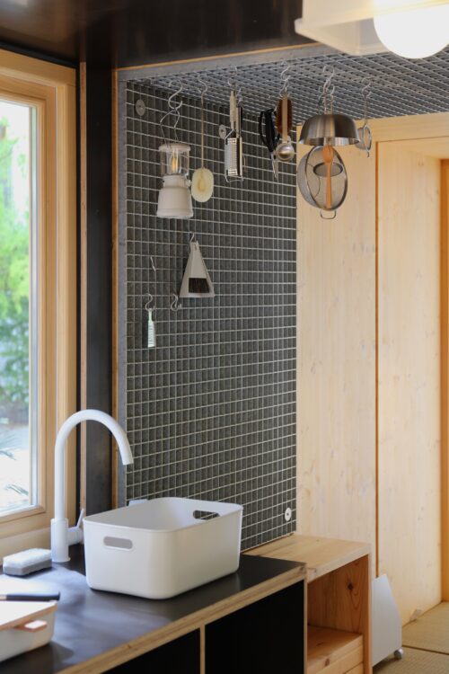 The collection of ready-made objects on display around the cabin catches the eye. All are made from existing MUJI products: a birdhouse made from a bookend and a drawer, for example, in a simple but meaningful statement. It is a joyfully minimalist proposition that questions our relationship with objects, consumption, and use. In other words, design that speaks softly but says volumes.