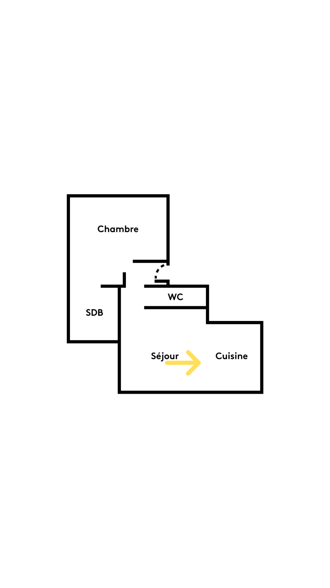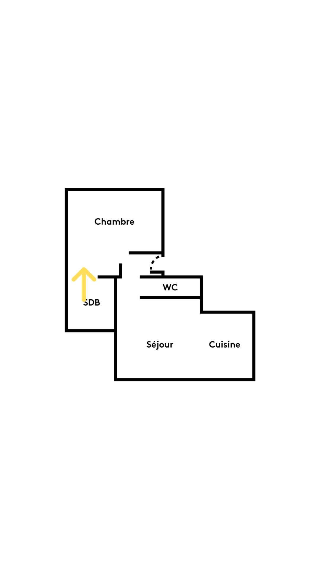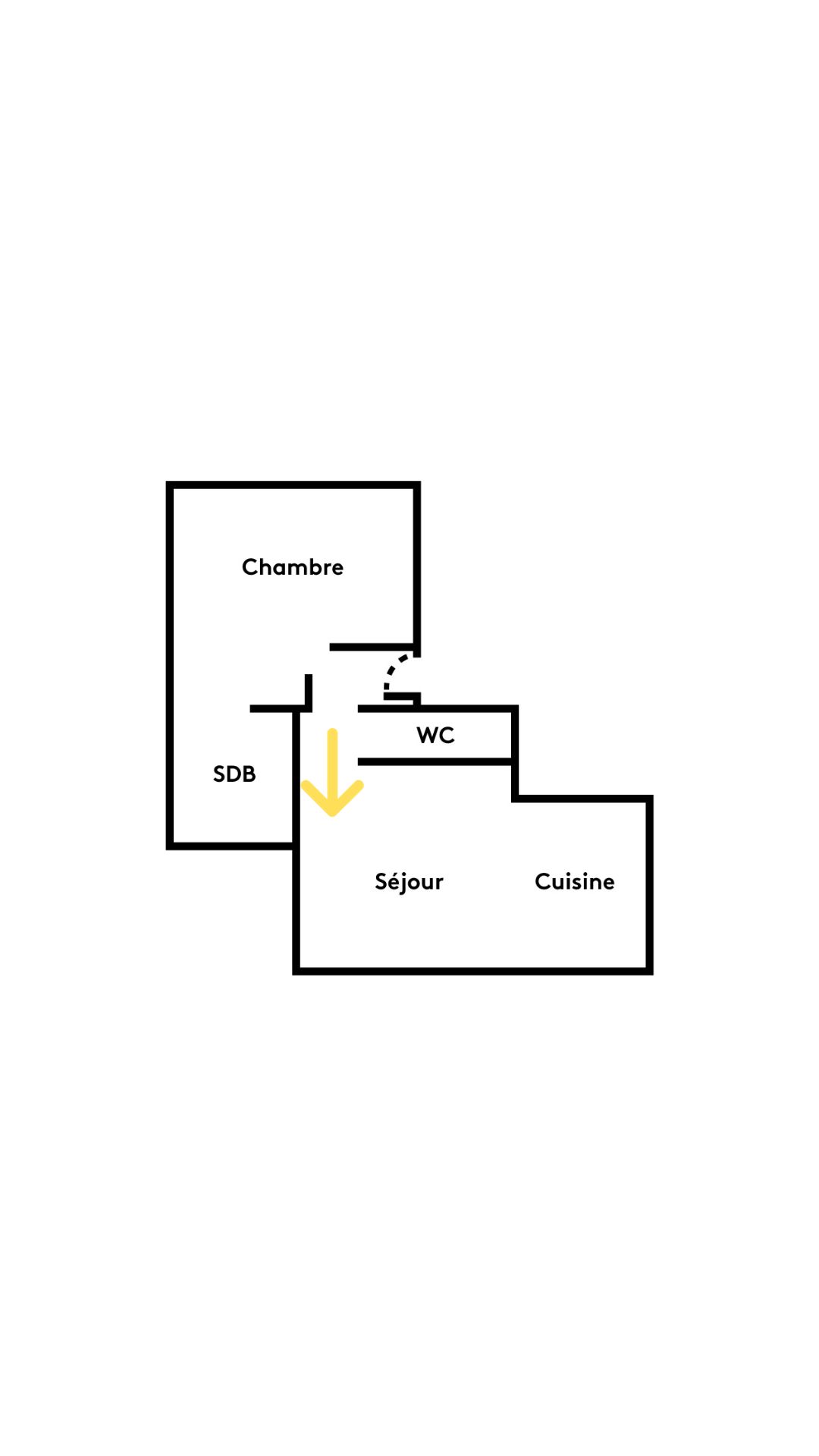 A curved partition has been created at the top. It encourages you to continue towards the day areas.