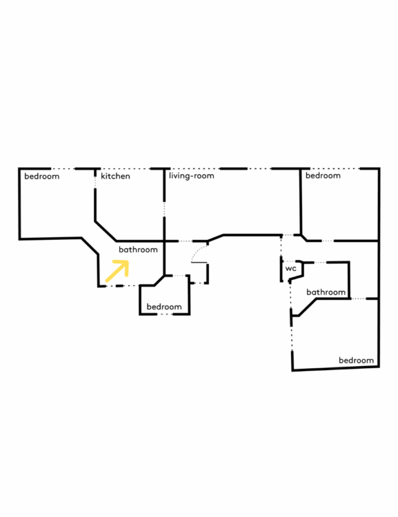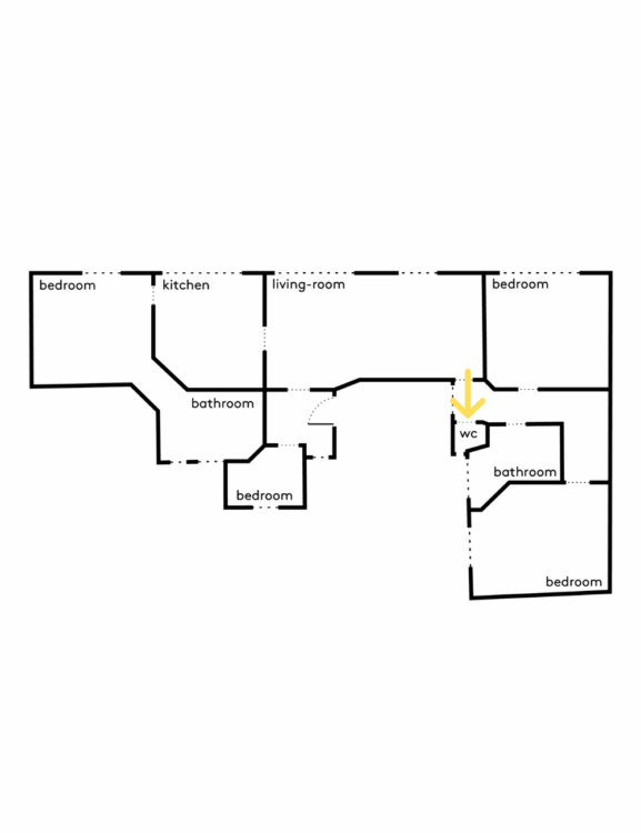 The deep green color gives the WC added character. The contrast between the color and the floor pattern emphasizes the height and brightness of the space.