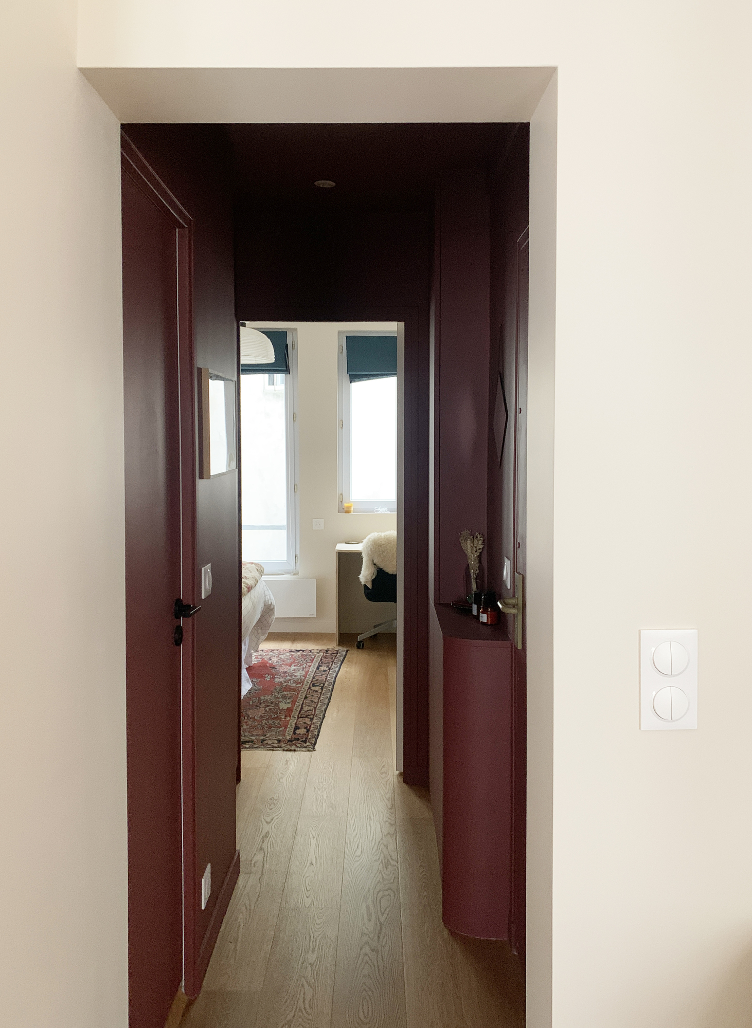 Take a look at @and.light’s Formakami paper pendant light, which mirrors the curves of the alcove… before literally letting yourself be drawn in by the intense red of the entrance hall!