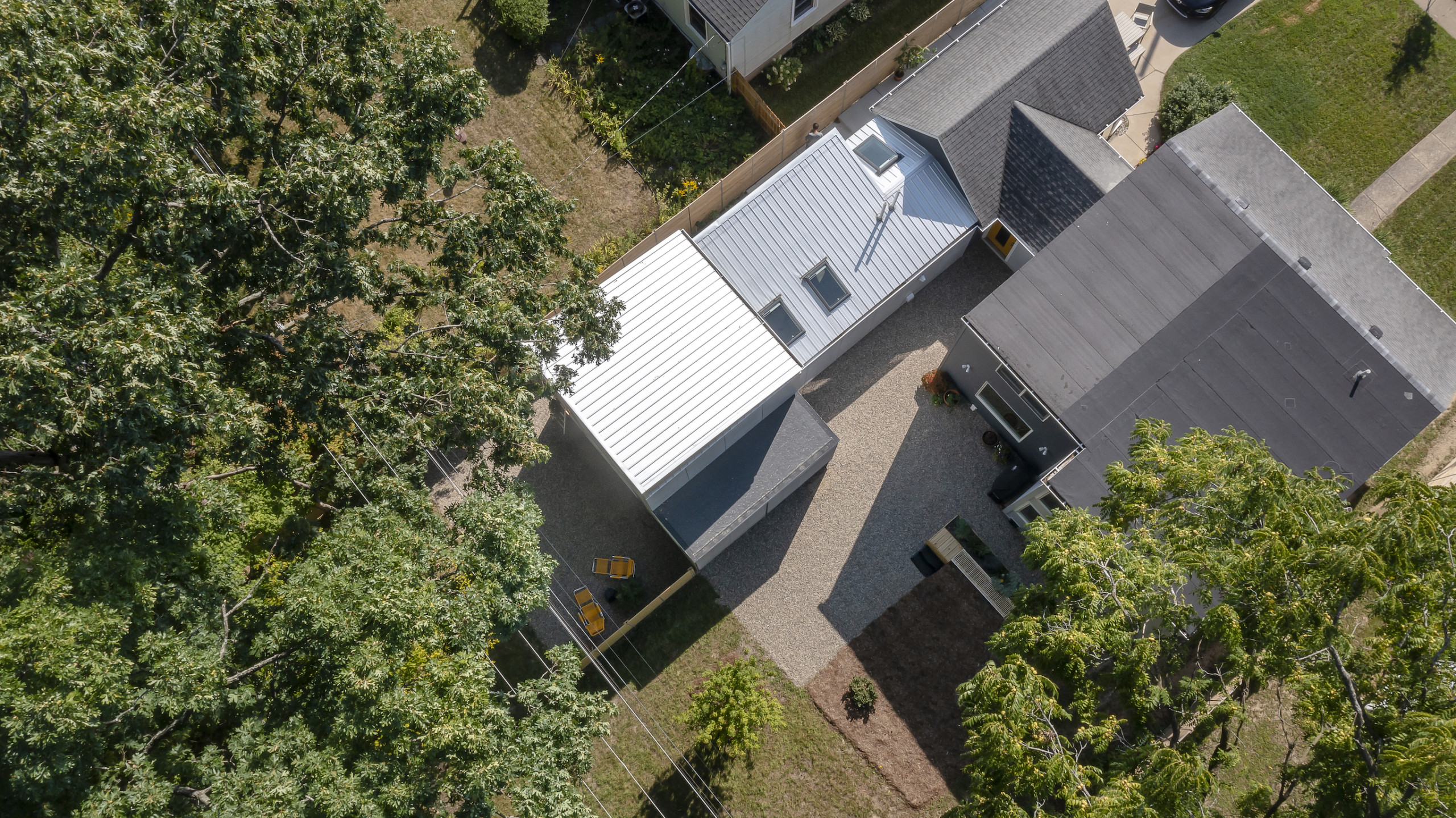 The tour starts in the sky! More than just a simple luxury, this view clearly conveys the idea behind this annex: an independent secondary housing (here in light gray) from the main house.