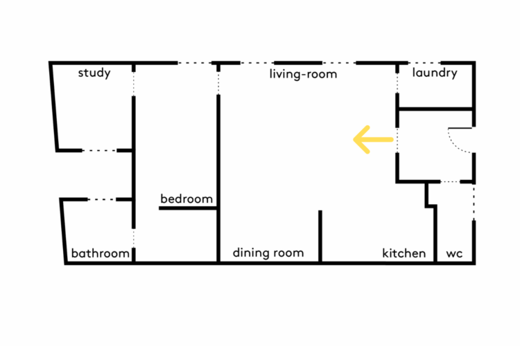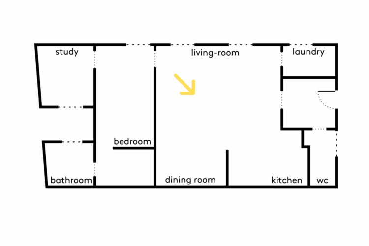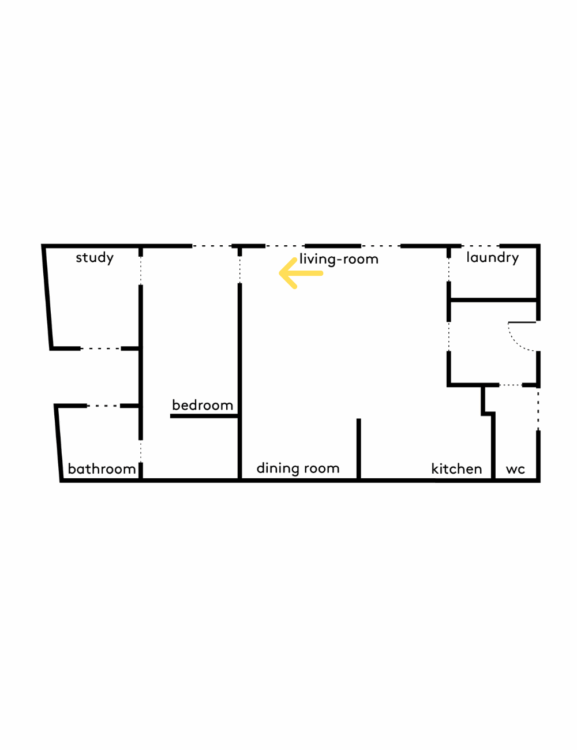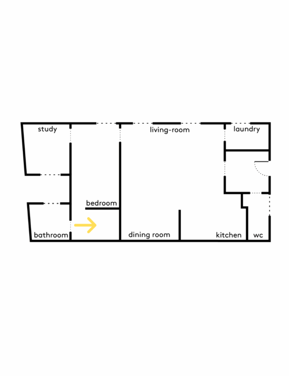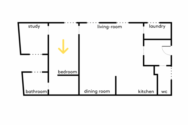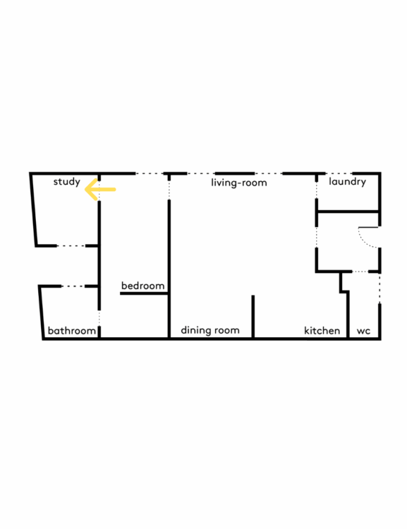 The sleeping area forms a straight line. The office, separated from the living room by the bedroom, is located at the far end of the apartment and therefore enjoys extra peace and quiet.