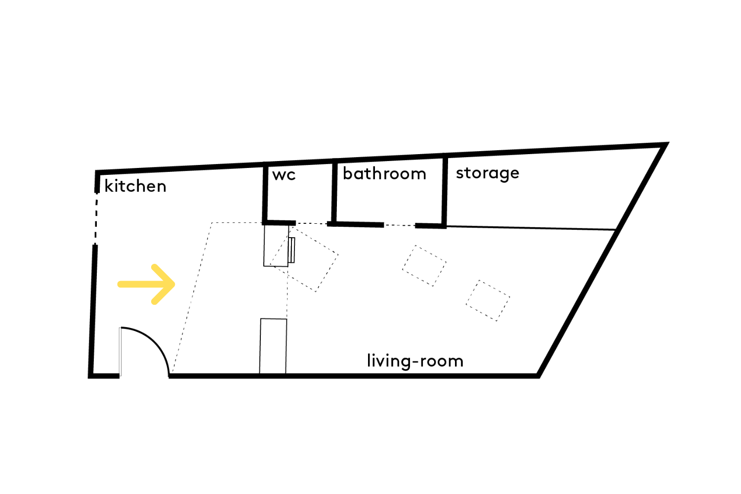 Joséphine Larere decided to open up the entire volume to create an open-plan, walk-through space, in order to increase light and visually expand the space. All the apartment’s technical elements are grouped together along the same wall.