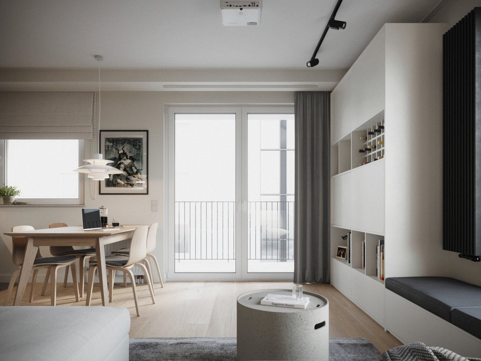 … or watch a movie, thanks to a projector and a screen hidden in the ceiling! An efficient way to enjoy TV while keeping your living room uncluttered.