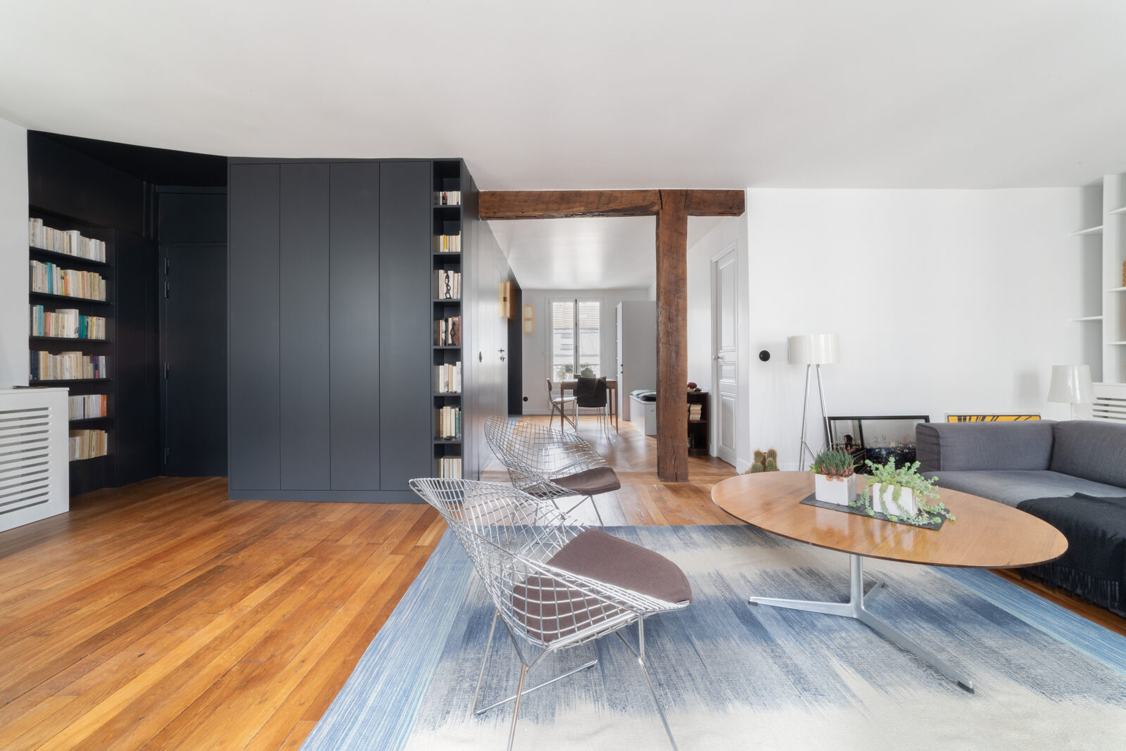 In Paris’s 10th arrondissement, architects Christophe Didot and Florent David have combined two apartments, structuring their uses and articulating the space around a technical volume.