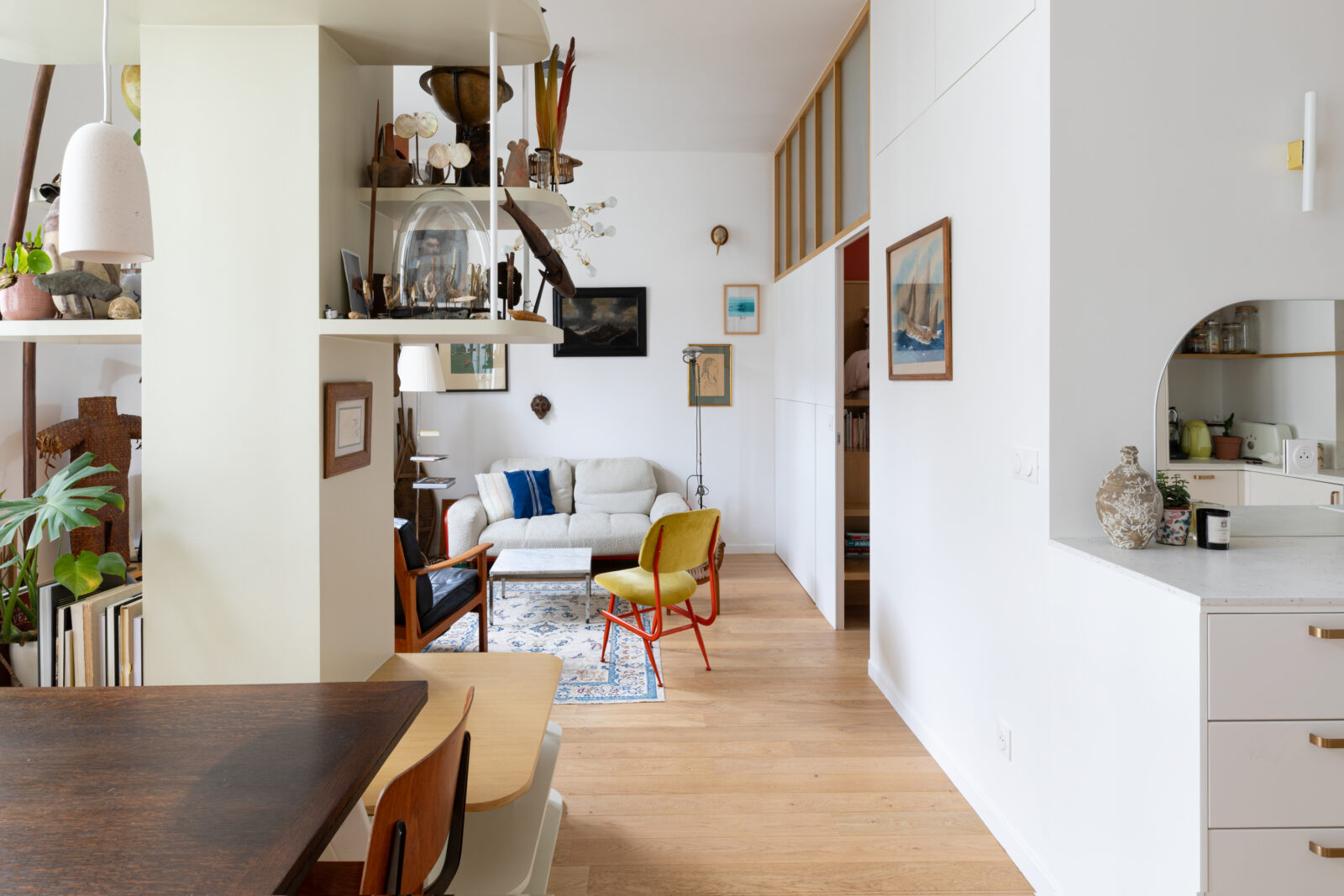 It was at a mutual friend’s house, some ten years ago. At the time, Marie was purchasing her first apartment in Paris and was looking for an architect to work with. She hit it off with Rémy Bardin, agreeing even on the practical aspects: it was a done deal. A decade later, Marie’s life has changed: Hugo has entered the picture and the couple has become a family. The couple set out to find a new, unconventional cocoon that would be more involving than ever. The apartment would have to be both a living space and a showroom for Hugo, who is an art dealer.