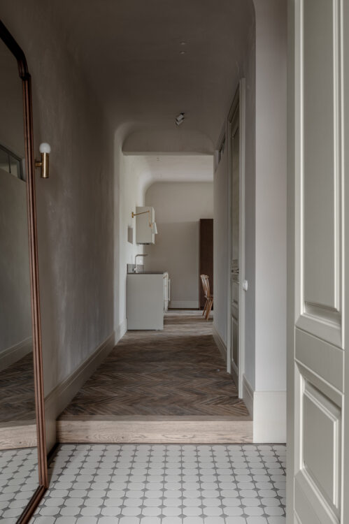 The apartment’s solid wood doors were made by Lviv craftsmen. They are inspired by traditional Austrian doors.
