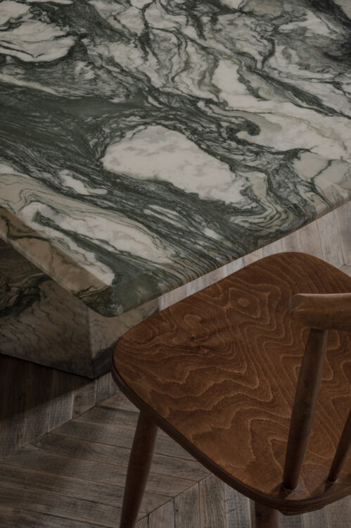 In the dining room, Rina Lovko opts for vintage furniture. The marble table comes straight from Spain. The chairs, meanwhile, are by Ilmari Tapiovaara for Asko and date from the 1960s.