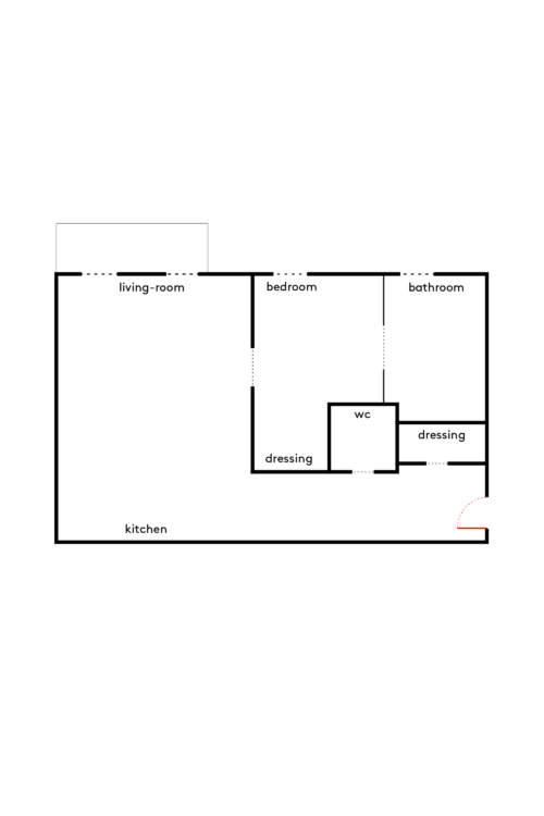The line layout of the apartment is clearly visible from the living room, from which you can see the bedroom… as well as the bathroom!