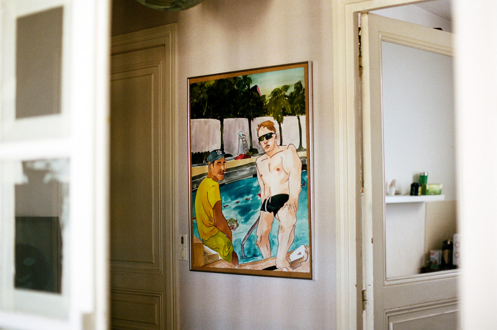 Porte d’Orléans. It’s really the cliché of the provincial who comes to Paris and visits the first apartment he’s offered. I knew very little about Paris. I didn’t even know the suburbs like Montreuil or Aubervilliers… I didn’t know anything. And so there was a landlord who showed me around an apartment and said: “Voilà, it’s 56 square meters, 1,800 euros a month, Porte d’Orléans…”. So there I was… It’s horrible actually, I’d been fed so many prejudices like “Paris is expensive” that I thought, “Well, that’s the rates.” So I signed for myself and my two roommates at the time. The three of us ended up in 56 square meters at Porte d’Orléans for 1,800 euros! We settled in, got jobs and, above all, we all worked from home. What’s more, all three of us are painters: Louis Granet, Alice Hauret-Labarthe and me. We’ve got the munchies, so it’s actually quite easy. Then, after a few months, we realized we’d been screwed. And right away, in June 2015, we arrived in this apartment. I’ve been here for seven years. Louis Granet and I bought it together, because it was cheap and, above all, it meant we could both work from home. It’s 90 square meters for 550 euros a month each. The living room we’re in today was a mess. He worked in the dining room and I worked in the living room. There was paint everywhere. There’s still some on the floor. I’m a bit worried about the deposit…