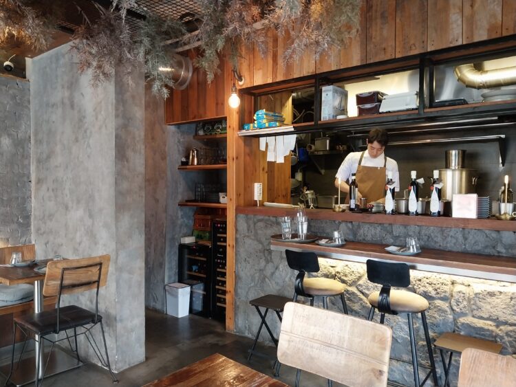 Après avoir dégusté un délicieux alcool, j’ai cherché à rassasier mon appétit. Pour remonter le temps, je me suis rendu à Seochon, un quartier historique situé à l’ouest du palais de Gyeongbok. Attiré par l’enseigne frappante de KOCHIBI, une osteria fusion Jeju-italienne, j’ai pénétré à l’intérieur. Le titre, qui signifie « la famille Ko » en dialecte de Jeju, est le fruit du travail du chef propriétaire Myung-hoon Ko, un vétéran culinaire originaire de l’île pittoresque de Jeju. « Après avoir acquis de l’expérience dans des restaurants italiens de renom, j’ai eu envie de créer quelque chose d’unique, en m’inspirant de mes racines de Jeju ». Le restaurant intime, qui peut accueillir un maximum de 16 personnes, respire le charme rustique du paysage volcanique de Jeju. La star du lieu est le risotto KOCHIBI, une réimagination du Momguk, spécialité de Jeju à base de bouillon d’échine de porc et de sargassum fulvellum. Il présente un équilibre harmonieux des textures, combinant un risotto riche et crémeux infusé avec divers fromages et garni d’un morceau de porc noir de Jeju mariné aux graines de fenouil. Parmi les autres spécialités à goûter, citons le steak de tilefish de Jeju servi avec une purée de céleri-rave et des noisettes, et le poulpe de Jeju délicatement grillé, assorti d’une vinaigrette à l’échalote de Champagne. Ko est impatient d’ouvrir le prochain chapitre de son empire culinaire dans les prochaines années, avec de nouveaux concepts inspirés de sa ville natale bien-aimée.