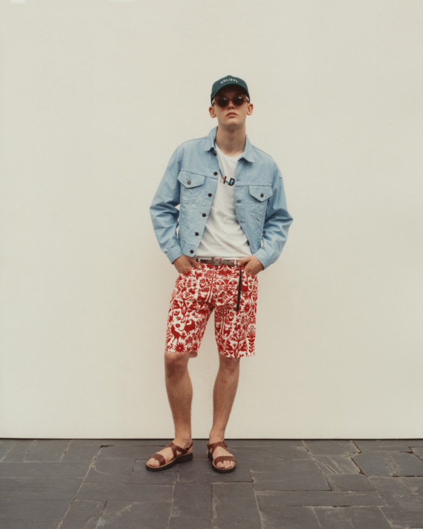 Un bermuda à fleurs, décidément le motif signature de la saison, et une veste en jean vintage tout droit sortie du showroom de Gauthier Borsarello le directeur du style de la marque Holiday Boileau.