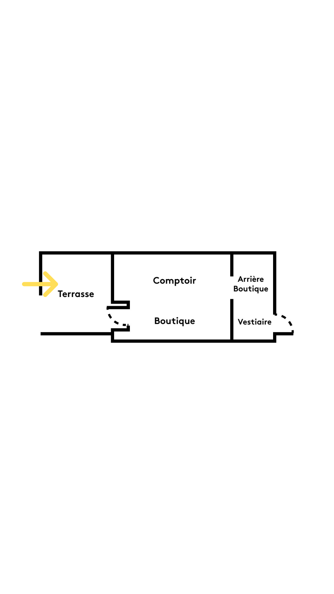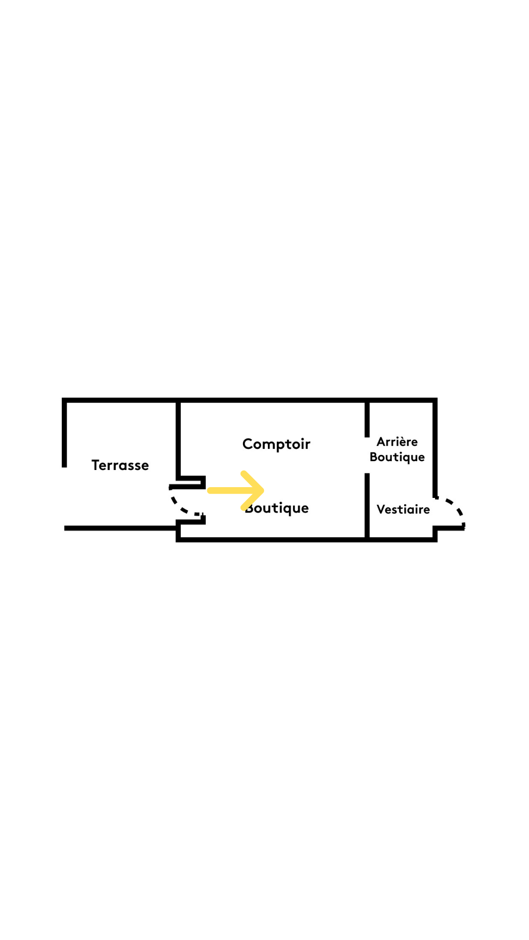 Une palette de couleurs restreinte mais audacieuse anime la rue avec son jaune lumineux et son rouge profond en fil conducteur.