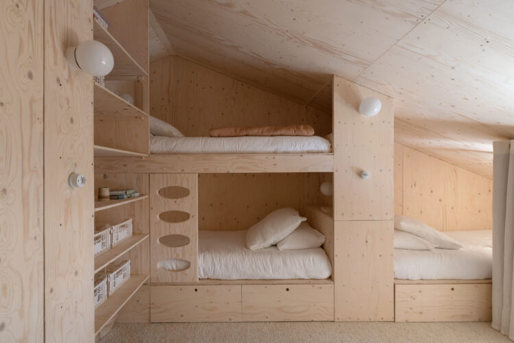 Spécial familles nombreuses : un ensemble de lits-alcôves superposés avec chevets et rangements intégrés pour une intimité augmentée !