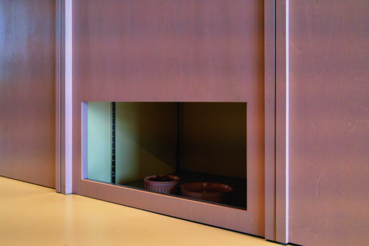 Un coin repas spécial chat intégré pour ne pas encombrer la pièce de vie.