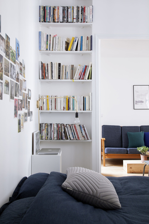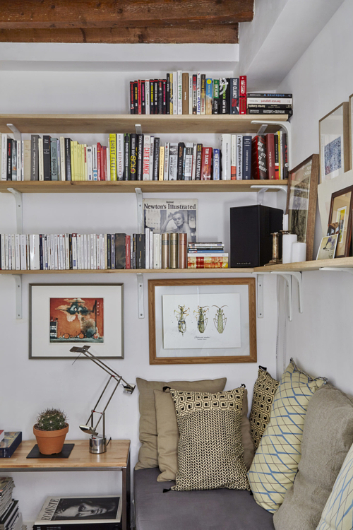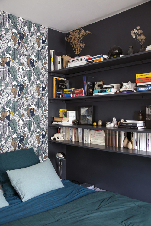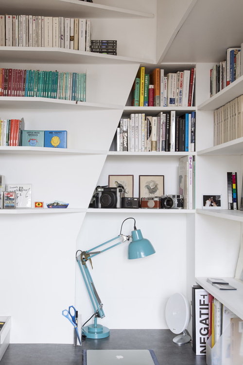 Les étagères montées à mi-hauteur : elles maximisent l’espace disponible dessous. Pratiques pour installer une méridienne ou un bureau.
