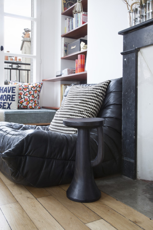 Sur la cheminée, une statuette Jank en bronze, fabriquée à la main au Sénégal.