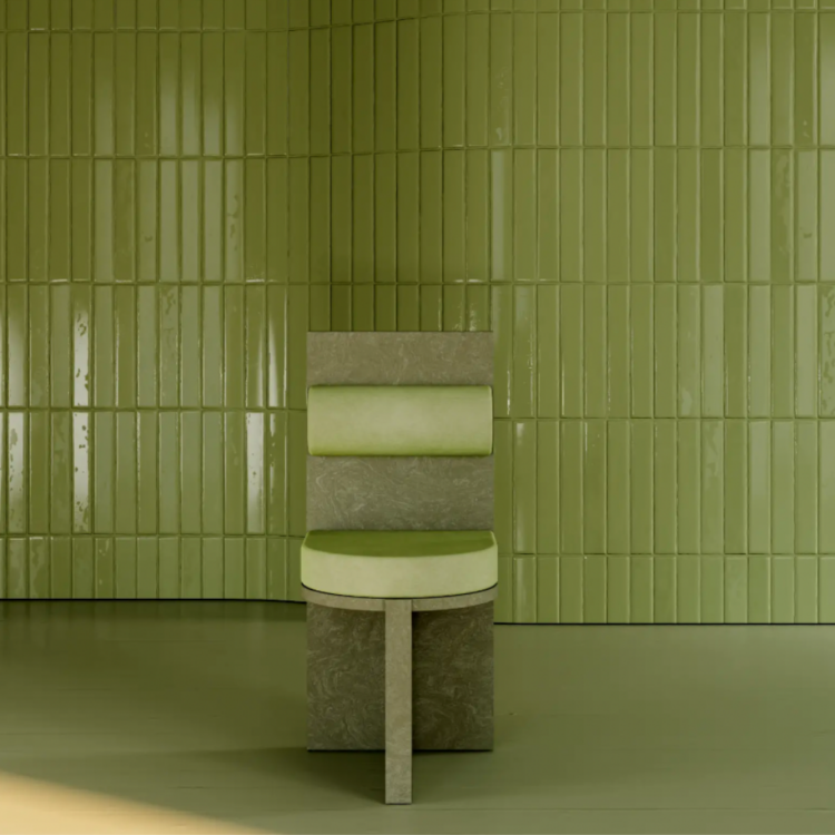 L’agence d’architecture Volta revisite le liège, matériau traditionnellement humble et accessible, à travers des assises très contemporaines. La collection célèbre les caractéristiques fonctionnelles, esthétiques et durables de ce matériau. La chaise de salle à manger Meï est développée en collaboration avec l’atelier portugais Trizzano : dans une démarche renouvelable et durable, il recycle et compresse le liège pour créer un motif innovant imitant l’apparence de la pierre. Dotée d’un dossier en forme de trône, la forme monolithique de la chaise est équilibrée par la douce rondeur du siège en velours. Chaque pièce est teinte avec des pigments naturels et associée à un coussin en velours de coton, pour un rendu terriblement cosy et élégant.