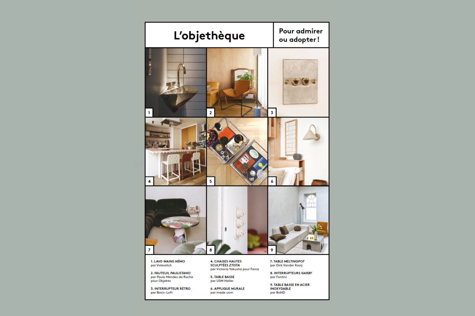 Quels sont les objets design les plus en vue de cette rentrée ? Découvrez les choix des architectes, designers et particuliers passionnés publiés dans les pages de Sloft Édition 05 et qui nous ont tapé dans l'œil. Du simple accessoire comme une poignée de porte, à l'équipement de pointe comme une cheminée suspendue, chaque objet participe à l'écriture d'un intérieur unique. Nous vous les présentons ici !