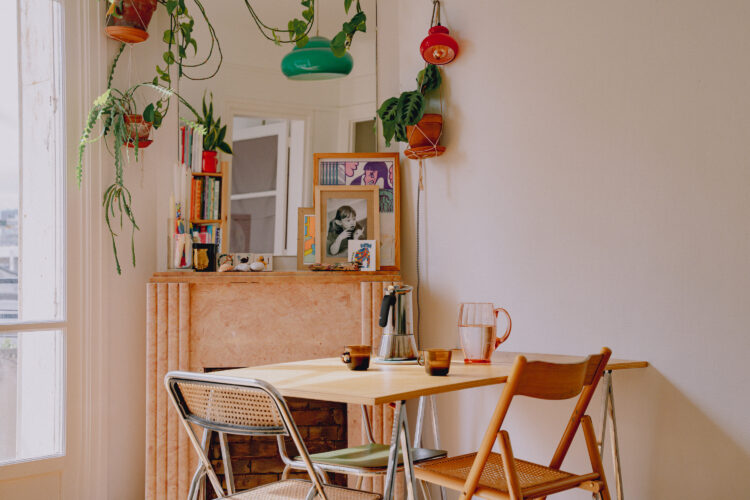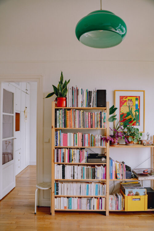 La déco de mon chez moi et de la librairie se confondent. Et pour cause : Julia et moi avions imaginé cet espace comme notre maison. On s’est souvent fait la réflexion qu’il ne manquait que des lits ! L’un comme l’autre sont chaleureux, nous y avons créé des liens affectifs forts. Néanmoins, l’interaction constante en boutique fait que j’ai besoin d’être dans le repli chez moi. Je vis à Saint-Ouen un peu comme dans un cocon, avec mon conjoint. Nous invitons rarement.