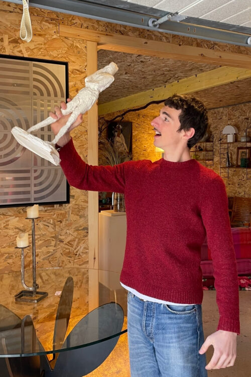 Hmm, voyons… J’ai ce plâtre représentant une femme debout en train de penser. Il vient d’un atelier d’artiste, et je l’ai acheté avec un lot de tableaux et d’autres plâtres. Je m’y suis un peu attaché, donc j’ai du mal à le vendre. Ça n’a pas vraiment de valeur marchande, vu que l’artiste n’est pas connu, mais ça a de la valeur pour moi. Et puis, ça ressemble un peu à un Oscar, donc c’est assez drôle. Voilà pour Timothée…