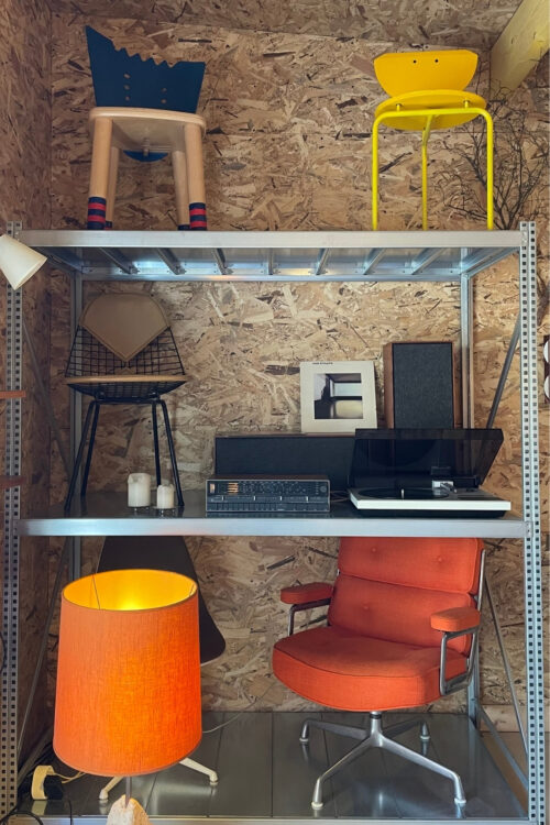 Effectivement, c’est de plus en plus fragile, même si le prix défie toute concurrence. En tout cas, ma vision du design, c’est vraiment quelque chose de solide, fait pour traverser le temps. Tout ce qu’on voit ici est qualifié de design, et pourtant, ça a plus de 60 ans, parfois davantage. Et c’est toujours là : solide, en bon état, alors même que ces pièces ont été utilisées et ont parfois connu plusieurs déménagements. La coiffeuse qui est là, par exemple, je l’ai achetée il n’y a pas longtemps à des personnes qui l’avaient depuis l’époque, puisqu’elles l’avaient achetée dans les années 1960. Elles m’ont dit qu’elle avait connu trois déménagements, ce qui est déjà énorme, et pourtant, elle est dans un superbe état. Bien sûr, elles en ont pris soin, mais tout de même : les pieds n’ont pas bougé, rien ne s’est désolidarisé, il n’y a pas une vis qui bouge, pas de jeu, rien. Le miroir n’est pas cassé. Et quand on voit ça, c’est assez incroyable. Ce ne serait pas le cas d’un meuble Ikea démontable, qui supporte souvent à peine un seul déménagement.