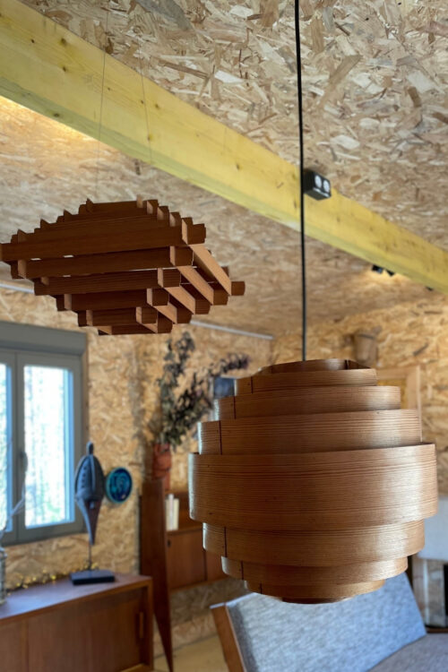 Je lui conseillerais d’opter pour de petites assises d’appoint plutôt qu’un grand canapé. Une petite chauffeuse ou, à la limite, un canapé deux places, moins imposant, pour ne pas trop charger l’espace. Utiliser de petits tabourets, aménager le séjour avec plusieurs petites pièces faciles à déplacer et pas trop lourdes visuellement. Il y a aussi le choix des couleurs et des matériaux : avec uniquement du bois dans un espace compact, l’ensemble peut vite paraître très chargé. Et puis, il y a tout ce qui est luminaire : dans un espace compact, on peut multiplier les petites lampes, qu’il s’agisse de lampes d’appoint ou d’une suspension, pour éclairer sans encombrer le sol.
