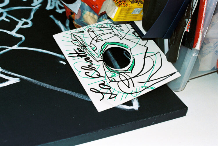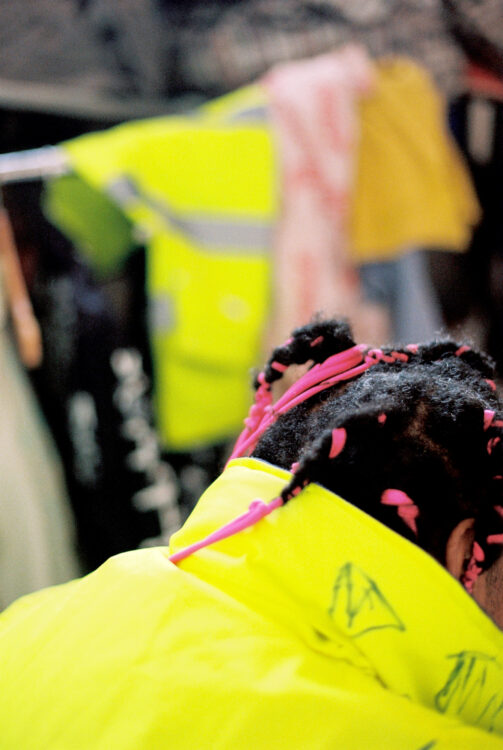 En arrivant devant la grande pile de béton recouverte de graffs qui borde l’accès au long immeuble en bordure de voies ferrées dans lequel elle réside, j’essaye de me rappeler où je l’ai découverte. En regardant le clip « Bad Romance » de Lady Gaga, où la diva porte un trench signé Vava ? Lors d’un concert épique de son groupe La Chatte à La Station — Gare des Mines ? Ou, plus récemment, lors d’une soirée chez des amis qui l’ont adoptée après lui avoir confié une mission de décoration dans l’incroyable appartement vénitien que nous documentons dans ce numéro ? Il faut dire que l’artiste a de nombreuses cordes à son arc.