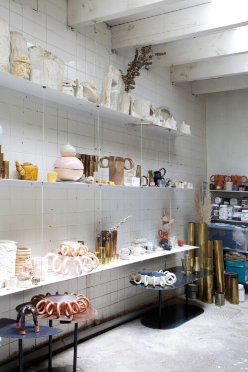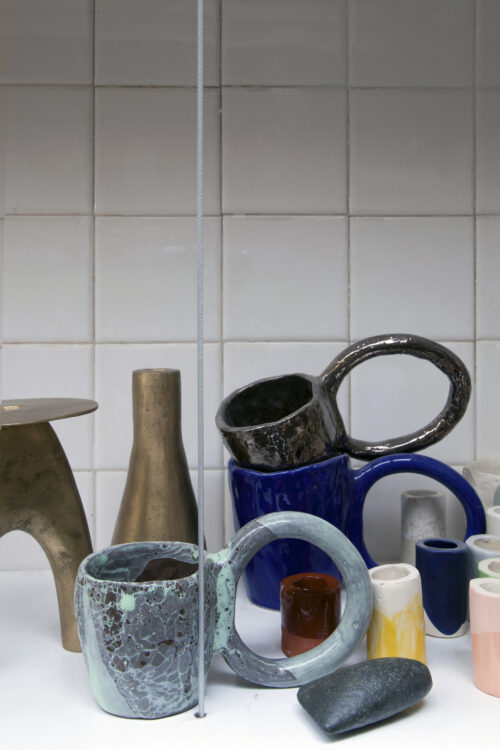 « Je fais ce travail sur du laiton, du cuivre et de l’acier. Et aujourd’hui, j’essaye d’associer le laiton et l’acier à la céramique pour créer un lien entre ces matériaux que j’ai explorés en parallèle jusqu’à maintenant et que j’aimerais confronter. Je fais de la petite série. Des pièces uniques. »