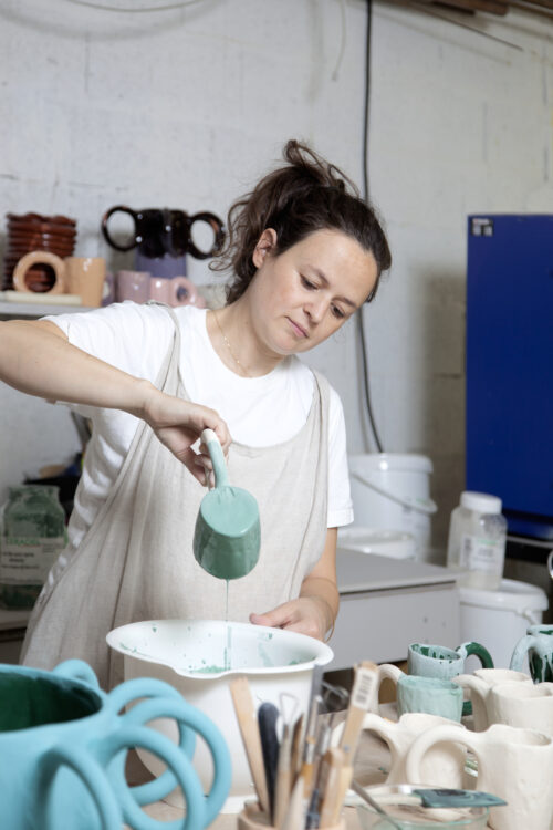 Après une première cuisson appelée « le biscuit », vient l’étape de l’émaillage : il se fait au trempage ou au pinceau, comme une sorte de bain de peinture.