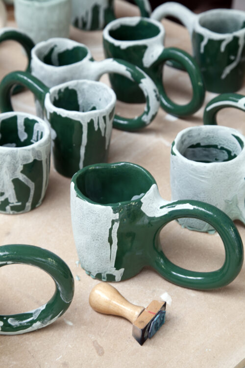 « Même les tasses qui sont considérées comme de la grande série parce qu’elles ne sont pas numérotées, ce sont des pièces originales parce qu’elles sont toutes fabriquées à la main. Je n’utilise pas de moule, donc toutes mes pièces sont uniques. »