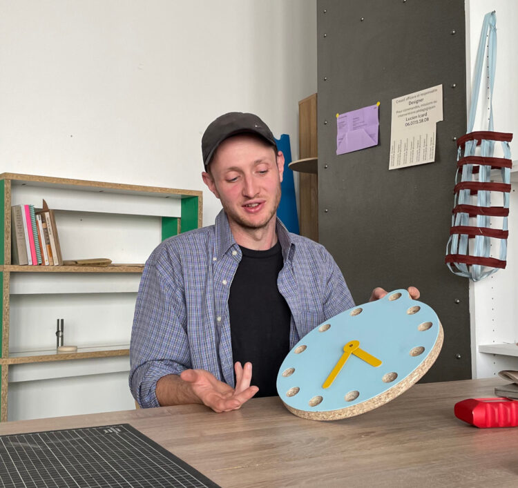 Ces deux valeurs ne sont pas en dissonance à mon sens. Par exemple, en tant que designer, il y a des choses que je vais trouver très belles, simplement parce qu’il y a un beau procédé de fabrication derrière qui apporte du sens… En ce moment, je récupère beaucoup de chutes d’ateliers, d’entreprises et aussi des rebuts industriels. Tout l’enjeu esthétique, c’est de s’adapter à la diversité des matières qui arrivent. D’ailleurs, tout l’enjeu de mon travail réside dans une adaptation constante à ce qui existe déjà, tout en y appliquant mon identité formelle avec des traitements simples. Je fais aussi en sorte de travailler ces matières avec logique… C’est-à-dire que je ne vais pas travailler le bois comme le plastique ou le plastique comme l’acier. J’aimerais également souligner qu’à mes yeux, un bel objet reste avant tout celui qui est bien conçu et qui a du sens dans sa conception. Un bon exemple de cette approche est l’horloge que j’ai conçue avec l’Atelier Emmaüs : un projet qui cherche à être un support d’histoire transmis, liant engagement social, apprentissage et démarche responsable.