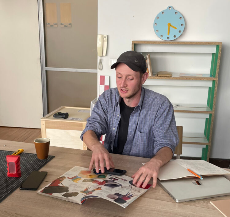 En septembre 2025, Lucien Icard prend un nouveau virage : il intègre l’incubateur des Ateliers de Paris, pépinière municipale dédiée à une nouvelle génération de créateurs. Dans ce haut lieu de l’inventivité, il consolide son activité aux côtés de pairs animés par les mêmes enjeux. Scénographie, autoédition, conseil en entreprise… Lucien est sur tous les fronts, là où s’esquissent des voies collectives, plus justes et résolument responsables. Ce sont notamment ces dimensions, présentes dans son travail, qui ont conduit Sloft jusqu’à lui, dans son laboratoire d’expérimentation — là où, plus que la magie, c’est la recherche minutieuse et patiente qui opère.