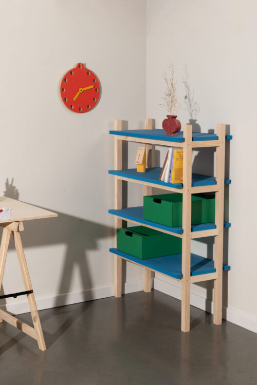 Ces choix sont très personnels, comme on dit, « les goûts et les couleurs », et c’est le cas de le dire [rires]. D’abord, concernant les formes, j’essaye de faire attention à ne pas mettre trop de choses qui n’ont pas de fonction… enfin, plutôt qui ne sont pas liées à l’usage. Pour moi, c’est important de ne pas faire d’excès ici. Aussi, les outils que j’utilise et les modes de fabrication que je mets en avant doivent être tout aussi simples à mettre en œuvre… j’ai à cœur de faire ça. Forcément, ça induit des formes simples, car une production simple, c’est aussi des formes simples ; c’est le processus de fabrication qui induit la forme et l’usage. On dit souvent de mes objets qu’ils sont ludiques, mais ce n’est pas spécialement comme ça que je les pense, non, mais je veux qu’ils soient lisibles dans leur ensemble. Je dessine des objets qui me plaisent, peut-être très inspirés des années 80 et 70… je m’inspire d’ailleurs beaucoup d’un catalogue Habitat, avec des références que je trouve plus belles les unes que les autres. Je tiens à développer une esthétique épurée, par la forme mais aussi par la couleur, avec des monochromes ou des bicolores.