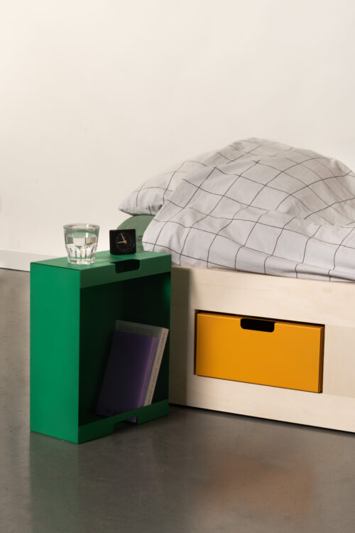 Je n’utilise pas ce terme en général. Je parle plus souvent d’espace réduit, de contrainte d’espace ou d’ergonomie. Mais je dirais que, pour moi, c’est une contrainte créative, au même titre qu’un procédé de fabrication ou qu’un matériau. Ça demande de vraiment réfléchir aux usager·es, en allant à l’essentiel — aussi bien dans les fonctions que dans les formes et les couleurs.