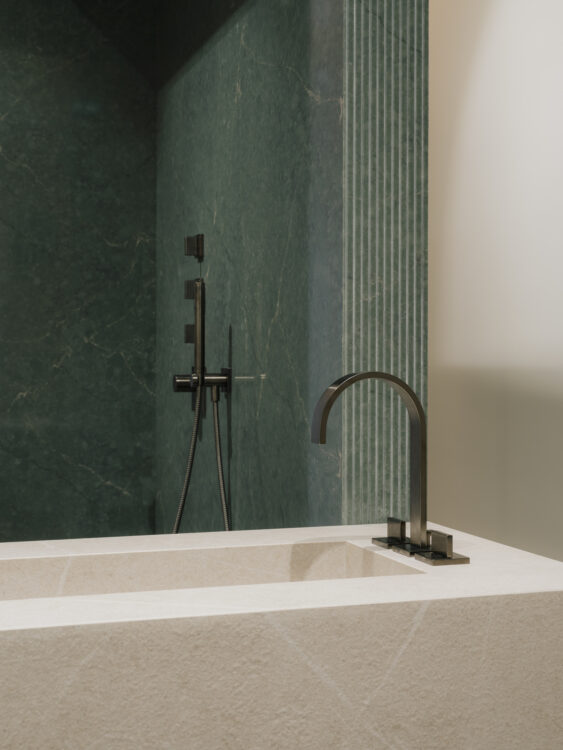 Pour chaque projet, une approche sensible est nécessaire. Les matériaux que nous avons sélectionnés chez Cosentino sont ceux qui ont inspiré notre projet et notre concept : Les Pierres Sauvages.