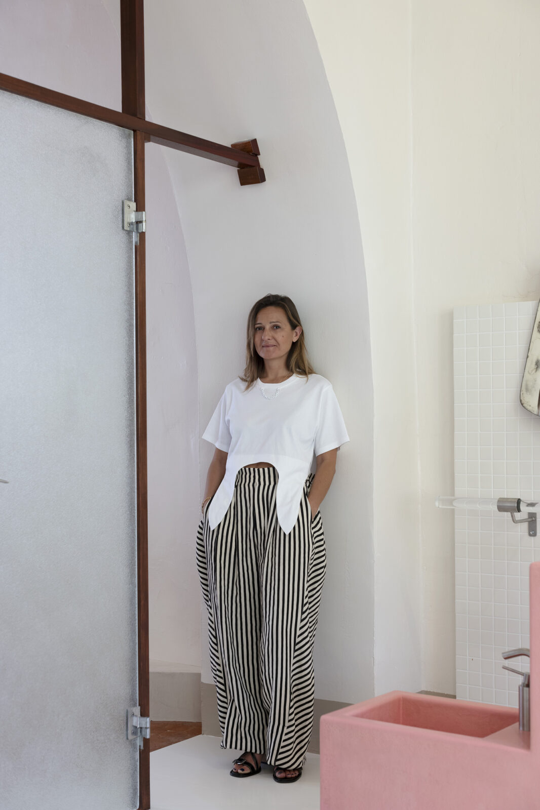 Francis Cabrel, Sophie Calle, Betty Catroux, Jean-Michel Basquiat ou encore Virginie Despentes, voici quelques-uns des noms qui s’affichent en toutes lettres sur le lourd interphone en laiton situé à l’entrée de cette Résidence vue mer. Certainement la copropriété la plus artistique de France, une académie les pieds dans l’eau. Oh magie, quand on presse sur l’un des boutons, l’occupant nous répond ! Le ton est donné, chic et décalé. La porte franchie, les pièces sont à l’avenant, conjuguant épure, sophistication, poésie et humour. Un véritable enchantement tant dans les objets les plus volumineux comme la balustrade en savon de Marseille que dans les plus petits à l’image de ces fourchettes à corps de gambas, idéales pour le barbecue, naturellement intégré comme n’importe quel appareil électroménager à la cuisine équipée de cet appartement de vacances. Vous l’aurez compris, il flotte dans cet endroit expérimental un air de décontraction fantasque à l’image du travail de sa créatrice, d’autant plus libre qu’elle joue à domicile ou presque et sans contraintes hormis celles des volumes. Vivant entre Paris et Marseille, Marion Mailaender a grandi dans la cité phocéenne, au milieu de ces édifices dits de « standing » avec halls en marbre, poignées en laiton et stores pour les loggias. Un modernisme un peu opulent typique de ce "French dream" d'après guerre lié aux congés payés et aux vacances qui s'est épanoui sur la Riviera et a façonné son imaginaire. Et qu’elle décline avec bonheur dans ses projets comme au Tuba Club, un ancien club de plongée transformé en un petit hôtel de charme aux Goudes. Less is more, too much is cool, aime à professer l’architecte et designeuse qui aime autant la fonction brute d’un objet qu’au contraire, sa version baroque dans la pure tradition déco française où l’utile est toléré à condition d’être beau. Il y a donc du minimalisme chez Marion Mailaender, mais toujours compensé par une touche généreuse. Il en résulte un équilibre où le volume n’est jamais synonyme de froideur, l’épure jamais ennuyeuse.