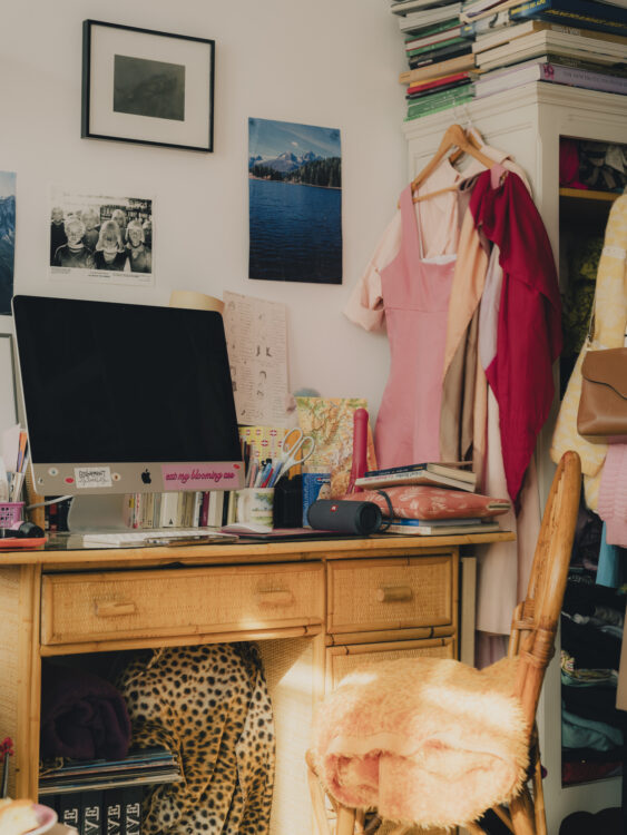 Sinon, la lumière de cet appartement va vraiment avec mon état d’esprit le matin. La décoration aussi. Étant obsédée par les visuels, j’ai besoin d’avoir des photos de mes proches, de voir les couvertures des livres que j’aime. J’ai besoin de voir et de suspendre les habits que j’adore !