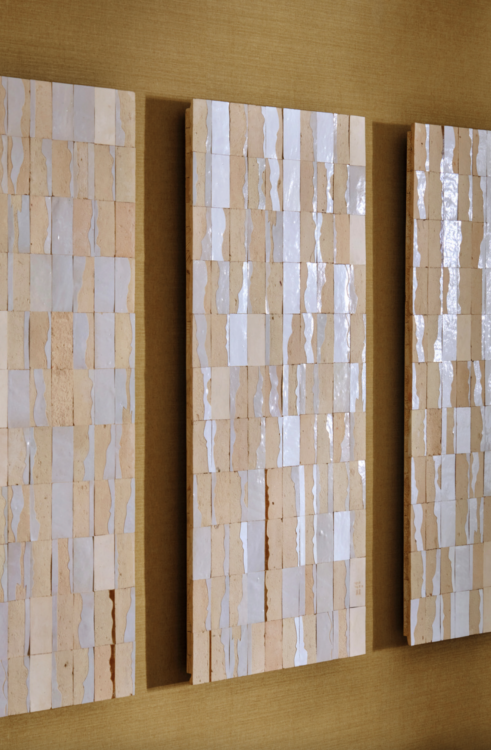 Le studio Atelier Zelij a été fondé pour faire vivre et réinventer la culture autour du zellige marocain. La sensibilité et la formation en design industriel des deux fondateurs, Delphine Laporte et Samir Mazer, les ont ensuite amenés vers d’autres matériaux comme les carreaux de ciment, la pierre et le terrazzo. Avec la nouvelle collection Traces, c’est un retour aux sources qui s’opère. Le sculpteur et designer Samir Mazer revisite la technique traditionnelle du ciselage du zellige pour proposer une nouvelle esthétique, éloignée de la traduction visuelle qui est communément faite, de nos jours, de cette matière. La collection explore les différentes textualités créatives de la nature pour convoquer les sens, jouant sur la brillance et le mouvement de cette matière vivante.