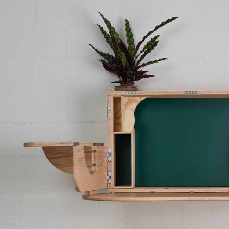 Ce bureau aux lignes compactes et épurées a été élaboré en collaboration avec des ergonomes du Service de Prévention et de Santé au Travail. Il offre dans sa position dépliée un environnement agréable, stimulant et permet d’éviter les TMS (traumatismes musculosquelettiques). Disponible en bois teinté blanc ou en hêtre vernis naturel, il dispose d’un large plateau de travail, d’un espace de rangement, d’un cadre pour positionner un écran d’ordinateur, d’un pupitre et d’une porte acoustique. Fixé au mur et repliable très aisément, Tanama s’intègre dans les petits habitats et se fait oublier grâce à sa modeste épaisseur d’une trentaine de centimètres. En bonus, la marque s’engage également dans une approche écoresponsable, en utilisant des matériaux naturels ou issus du réemploi et fabriqués en France, dans le respect de l’environnement et de l’humain.