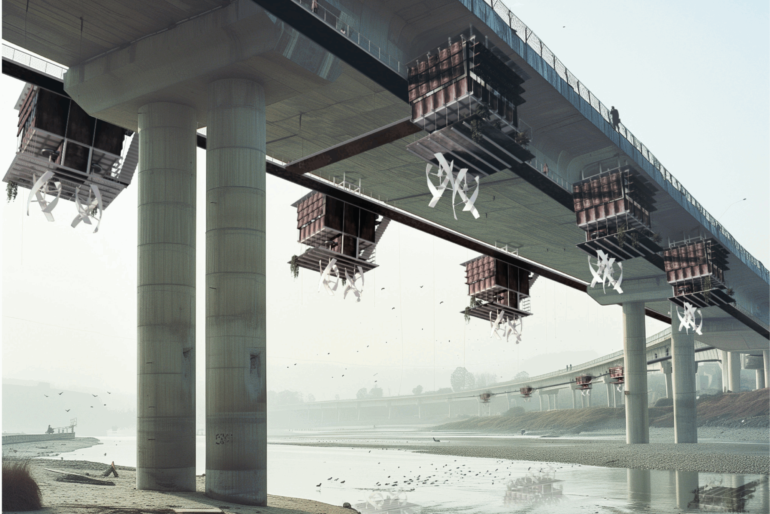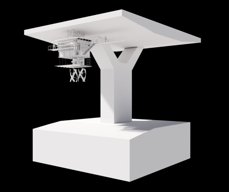 Imaginé pour se greffer aux infrastructures existantes, ce micro-habitat peut se suspendre sous les ponts, au niveau de barrages ou d’éoliennes.