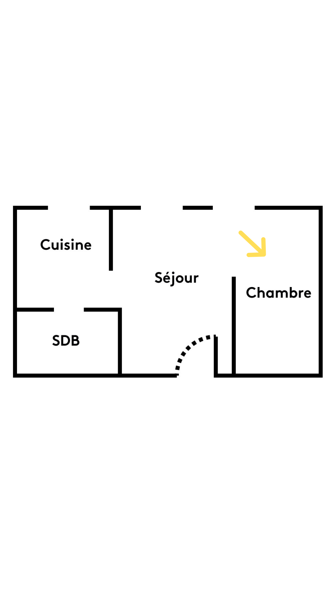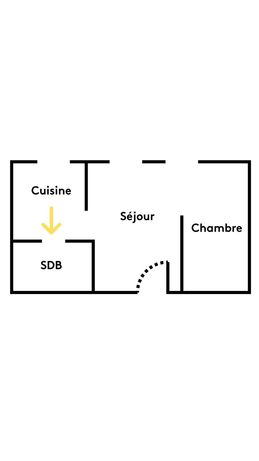Direction la salle de bain ! Cette pièce à l’origine aveugle, a vu sa cloison en partie détruite pour accueillir une porte à galandage et une fenêtre en verre translucide qui lui apportent la lumière du jour.