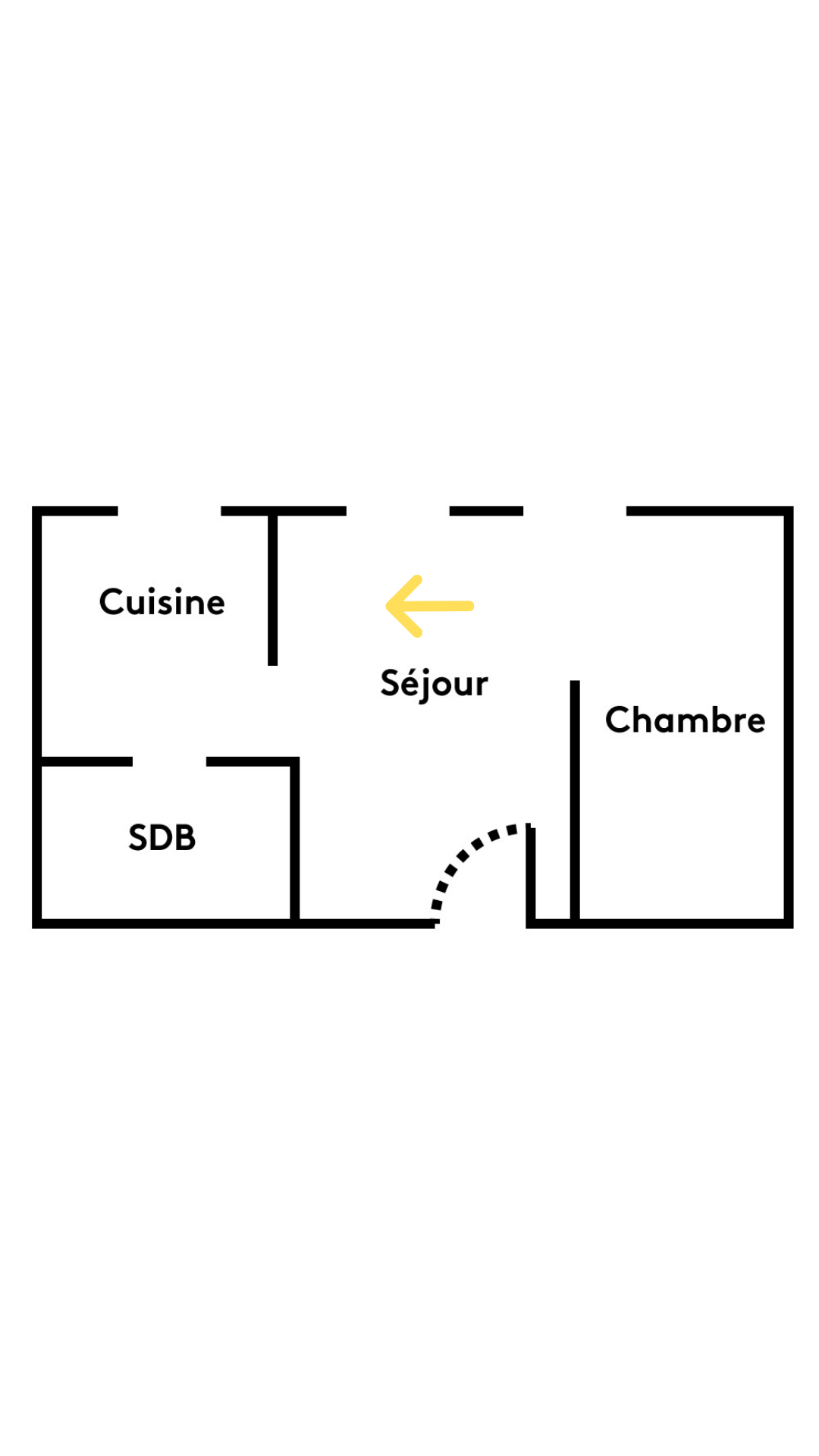 Nous entrons directement dans le séjour, l’unique et vaste pièce qui compose cet appartement. Pour nous éclairer, quatre fenêtres (l’une d’entre elles est cachée), un luxe dans un espace de cette superficie !