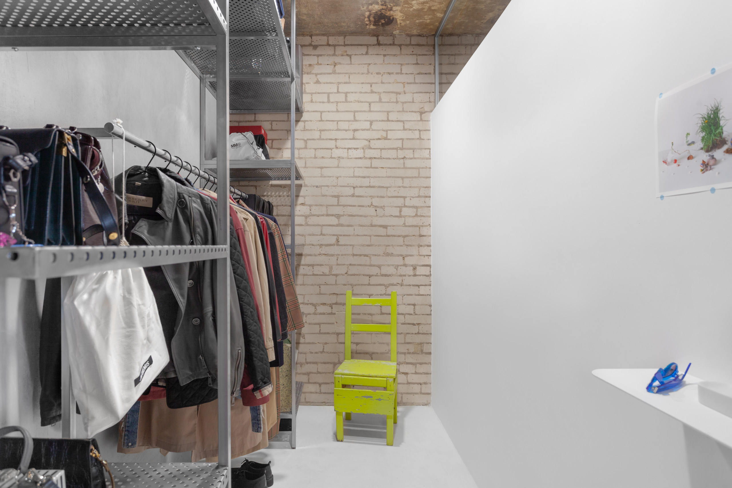 Une belle surprise se cache derrière les miroirs… les portes, peintes en rose bubble-gum, renferment un véritable showroom !