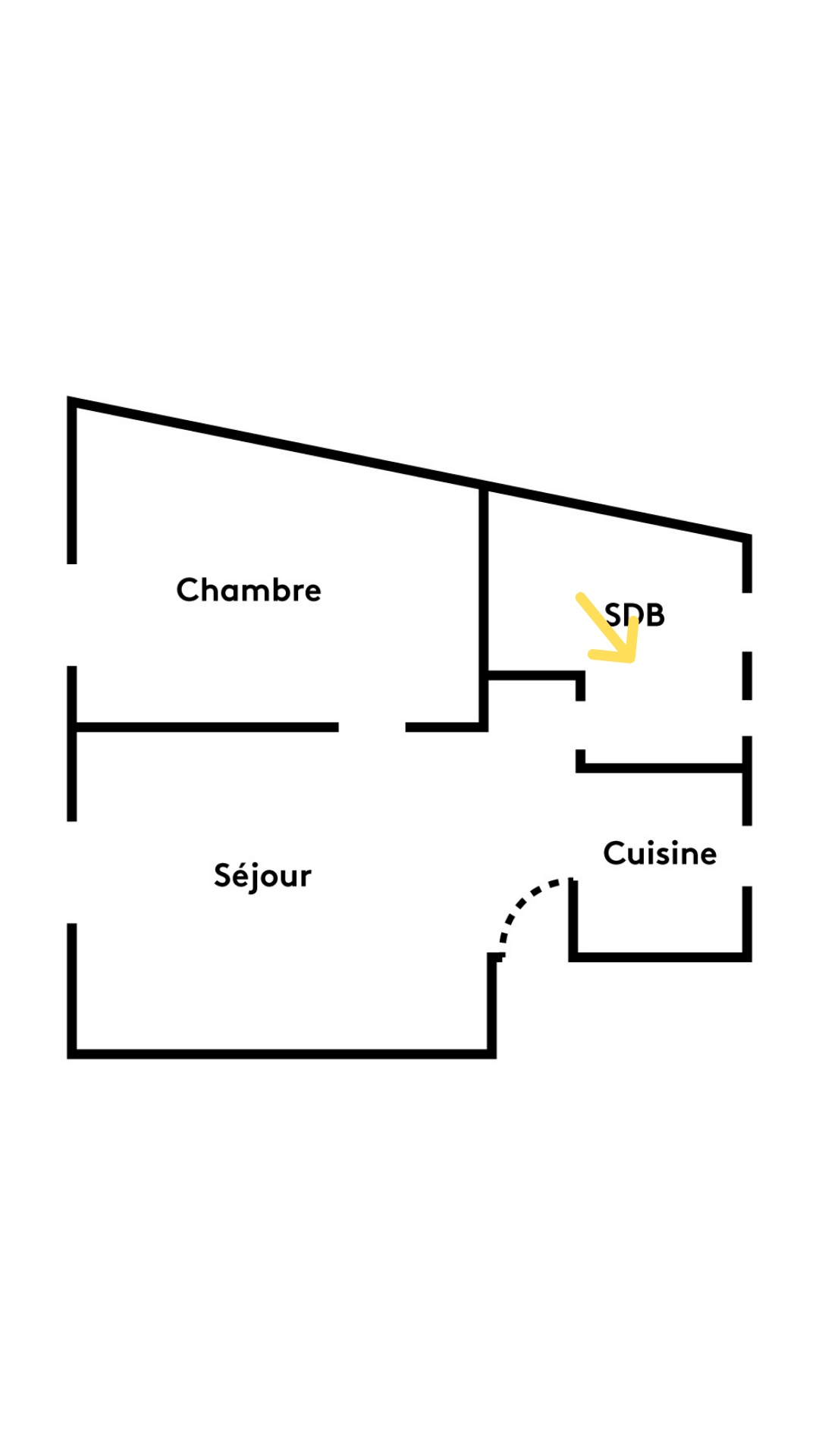 Preuve du soin apporté au caractère accueillant de l’appartement : une vaste douche ! Le plan vasque est habillé d’un carrelage effet pierre Ceppo di Gré, complémentaire à la tonalité du sol.