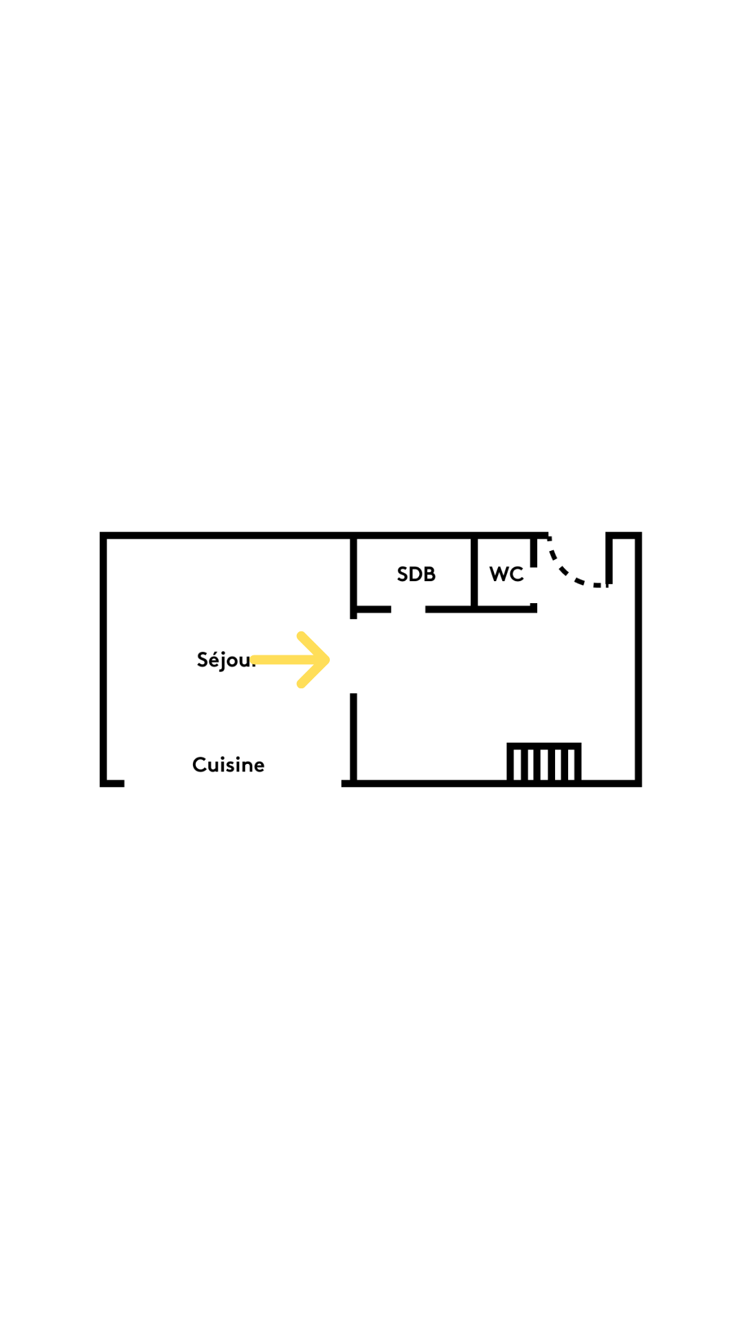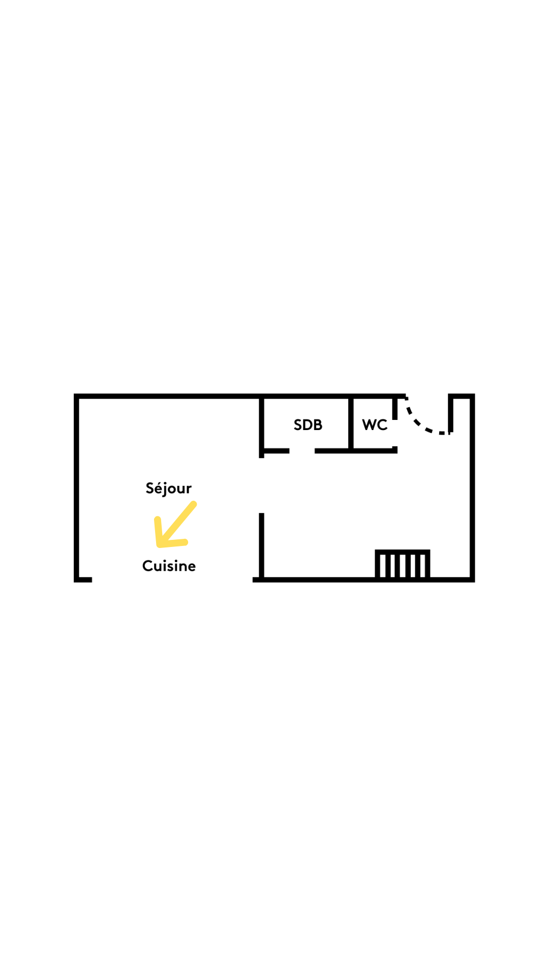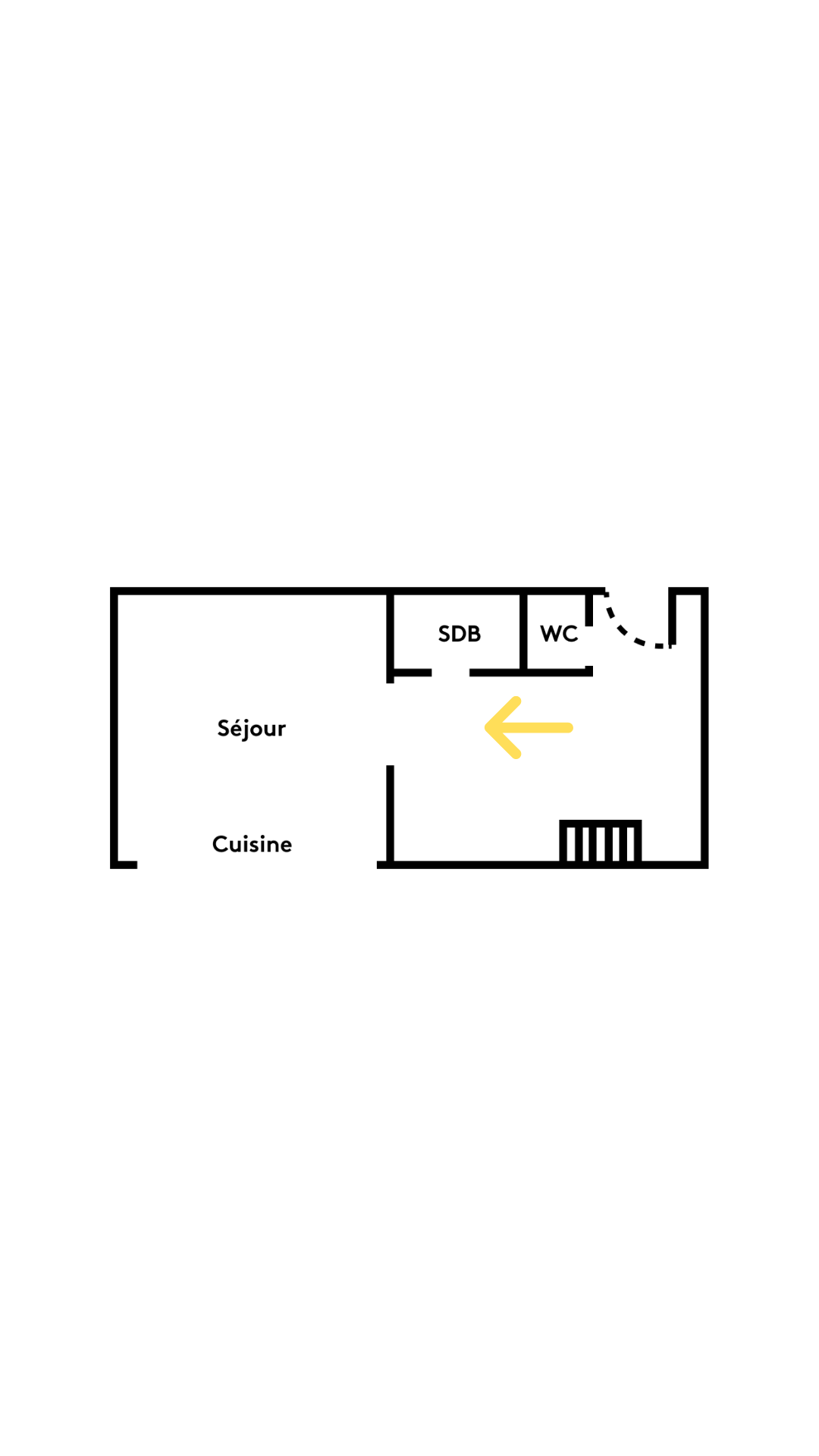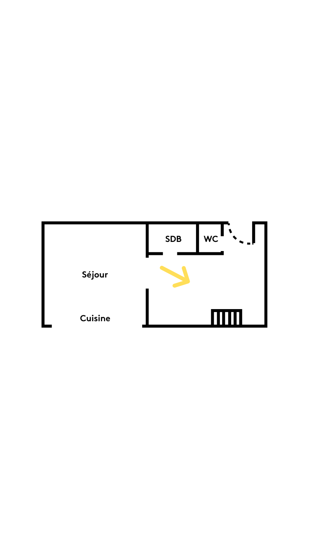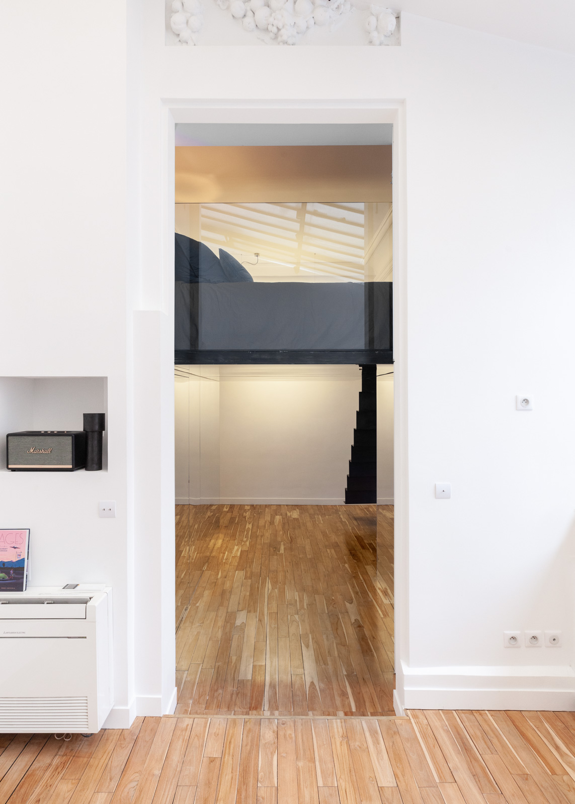 Il donne accès à une mezzanine qui permet d’avoir un espace nuit isolé des pièces de vie.