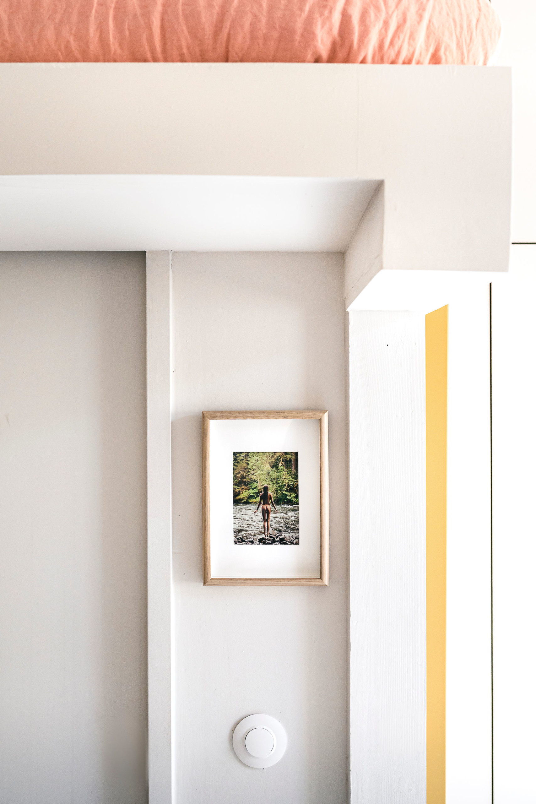 Une ouverture a été créée depuis la salle d’eau afin d’offrir à la chambre suspendue un maximum de lumière naturelle.