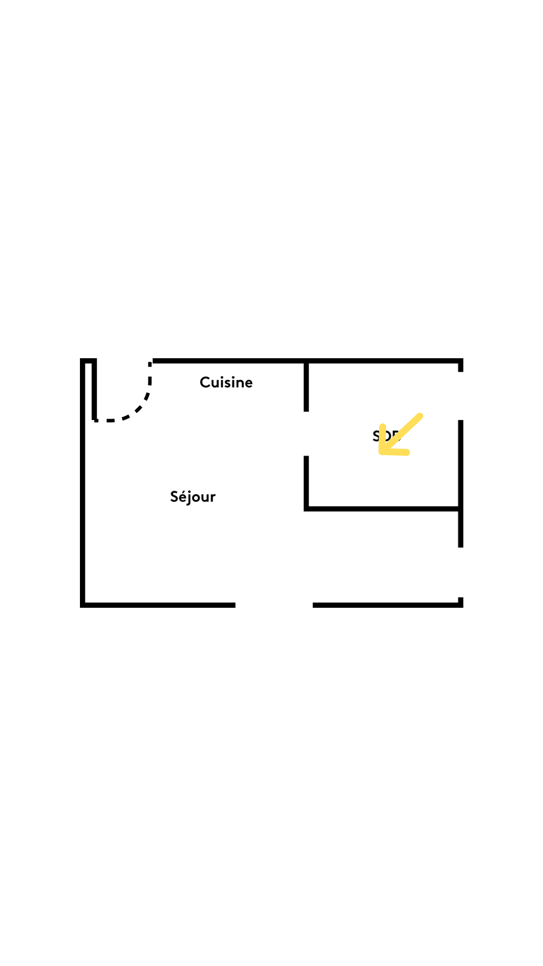La salle d’eau se niche sous la mezzanine, découpée afin de n’accueillir que le strict nécessaire côté nuit et de conserver ainsi une pièce de vie dégagée.