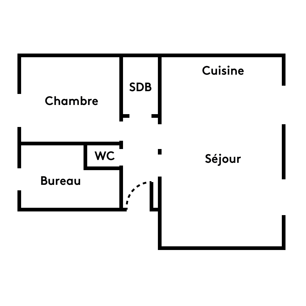 Nous voici dans l’entrée qui dessert les pièces en étoile. Classique ?